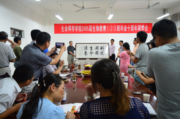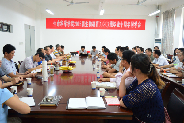6月21日,生命科学学院2005届生物教育1、2、3班校友从祖国各地齐聚母校举行毕业十周年聚会。生命科学学院在学院会议室组织师生联谊会,生科院前任和现任领导和部分教师代表出席联谊会。