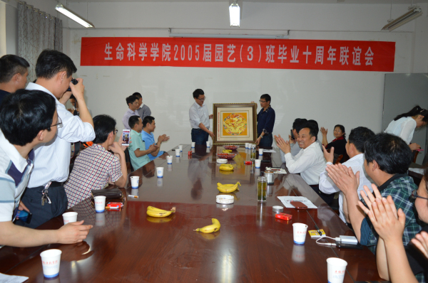 5月1日,生命科学学院2005届园艺3班校友从祖国各地齐聚母校举行毕业十周年聚会。生命科学学院在学院会议室组织师生联谊会,生科院前任和现任领导和部分教师代表出席联谊会。