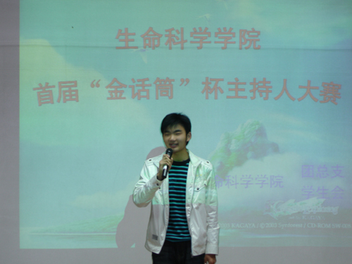 3月23日,首届“金话筒”杯主持人大赛在学知楼多媒体1教室举行。专职辅导员黄立义、刘庆安、张帆老师等出席了赛场。本次大赛由生科院团总支主办、院学生会承办,王文婷主持。