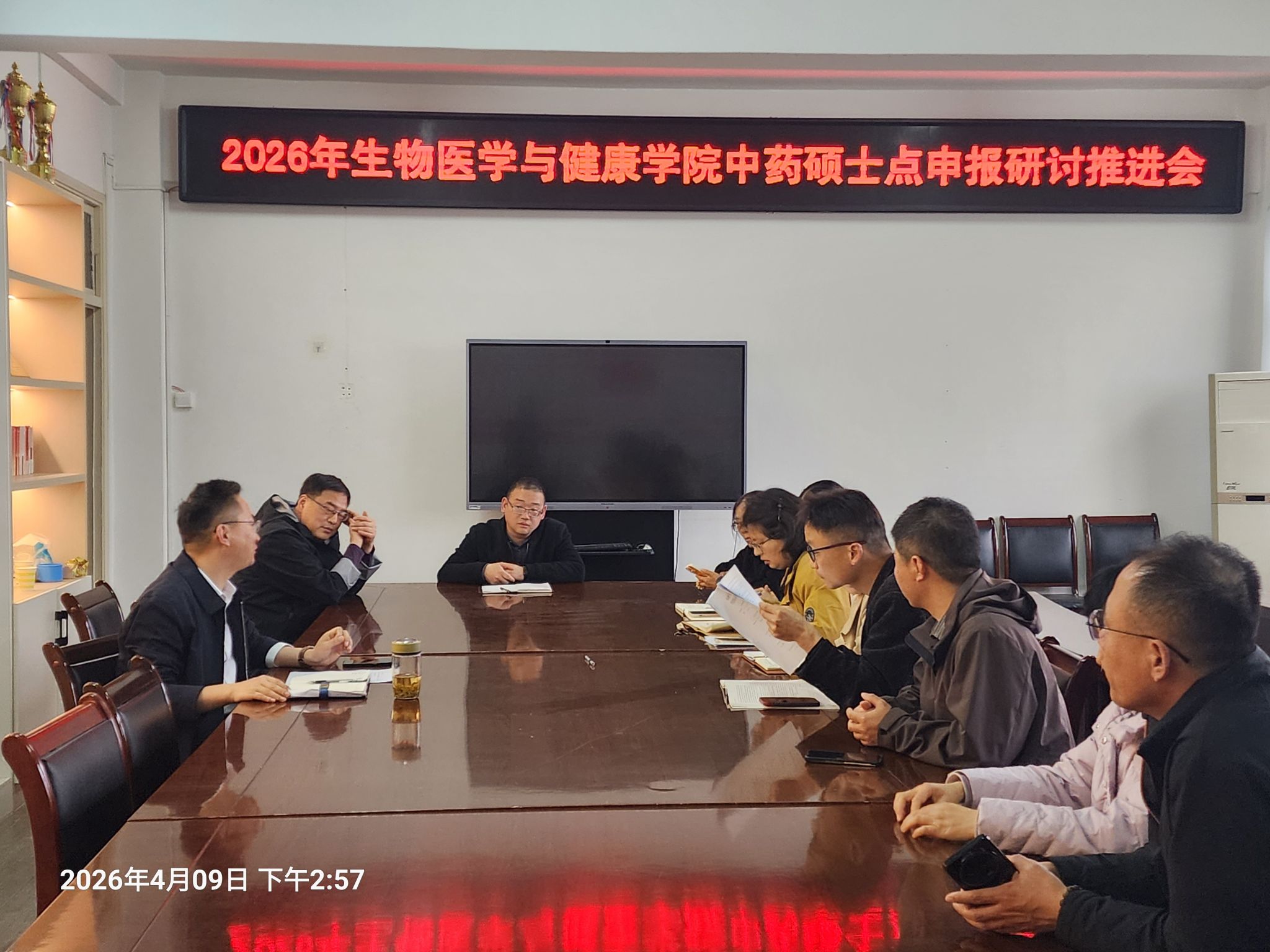 为深入贯彻落实学校学科建设战略部署,加快推进中药学专业硕士学位授权点申报工作,4月9日下午,生物医学与健康学院在学知楼425会议室召开中药硕士点申报推进会。学院党委委员、副院长周成,中药硕士点骨干教师及中药学教研室全体教师参加会议。会议由周成主持。