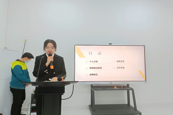 各部门工作人员分别从部门基本工作、个人思想政治及自身优缺点三个方面依次进行工作汇报,相继表达了一年来在学生会的收获及对部门未来的展望。述职评议采用学习教育、自我评价和组织评议相结合的方式,由评议小组对学生会工作人员的日常表现和工作态度进行综合评价,并通过评优等方式,达到激励先进、整顿队伍、纯洁组织的目的。
