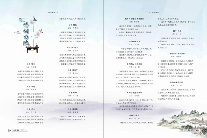 近年来,潜草诗社在校团委的指导下,坚持弘扬优秀传统文化,广泛开展文学创作和文化传承,社团举办的诗歌文化节、国学文化月、三行诗创作大赛等深入人心,吸引了全校文学爱好者积极参加,为浓厚学校文化氛围做出了积极贡献。此次集体亮相《楹联博览》,是社团在传统诗词创作领域深耕不辍的结果,也展现了我校社团建设的卓越成果。今后,校团委还将继续深入开展学生社团改革,充分发挥学生社团的育人功能,推动优秀文化在青年群体中的传承创新。(特约通讯员:张古品 审核:李刚)