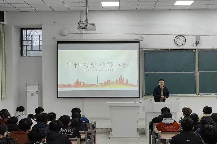 电气与电子工程学院团委开展的“缅怀先烈、致敬英雄”主题团课上,一起回顾革命先烈浴血奋战、前赴后继,用铮铮铁骨保卫家园的英勇事迹。引导学生在今后的学习、工作中继承发扬先辈们的革命精神,为中华民族伟大复兴贡献力量。