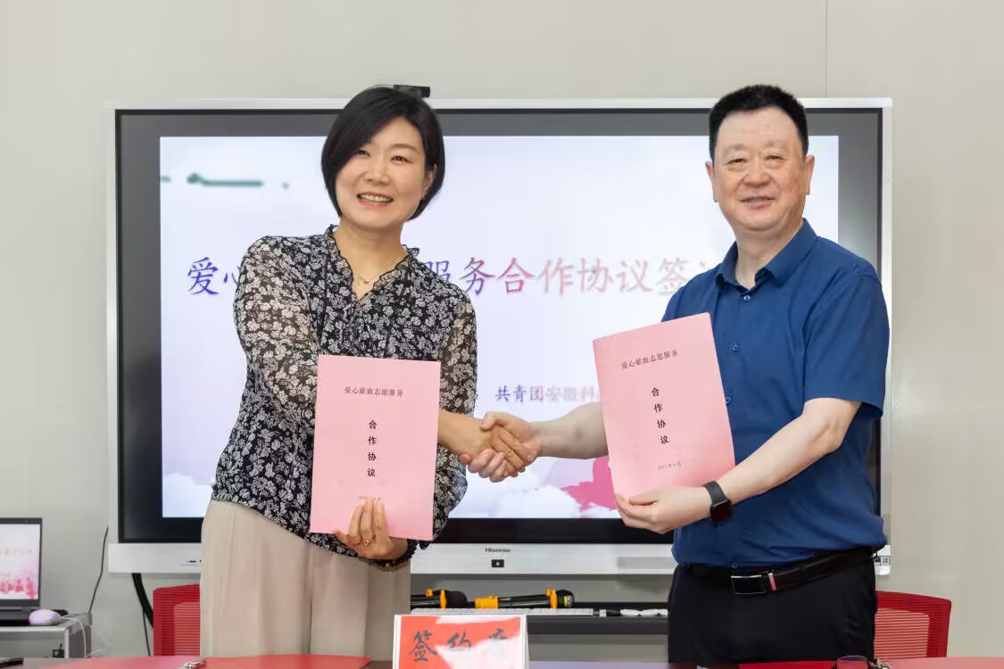 在2023年世界献血日来临之际,为进一步学习宣传贯彻党的二十大精神,激励广大青年学生关爱生命、乐于奉献, 6月1日,校团委与蚌埠市中心血站爱心献血志愿服务合作签约仪式在凤阳校区青年之家举行。校团委书记张聪,蚌埠市中心血站站长董柱出席活动并进行签约。