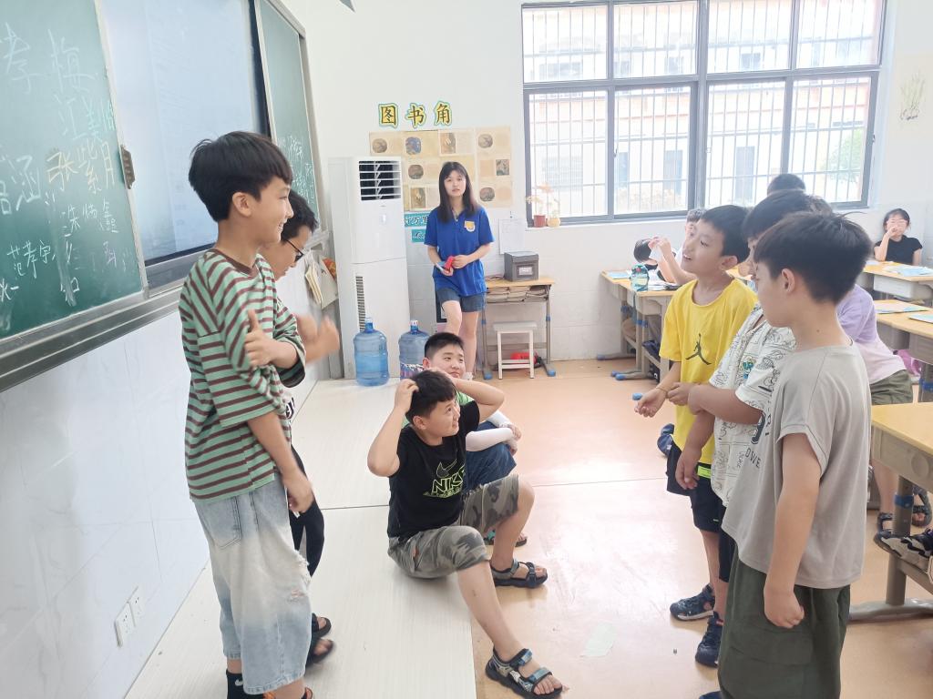 第一天上午,团队成员在慎城镇中心学校校长及小朋友们的热情配合下,顺利开展了一场温馨的见面会。在教室里,孩子们井然有序地就座,专心致志地聆听着老师们的自我介绍以及接下来五天的活动安排。随后,孩子们积极主动地上台,自信地介绍了自己的姓名、兴趣爱好、特长和梦想等。每一个完成自我介绍的小朋友都收到了团队成员精心准备的贴纸,而每一位“老师”也在一旁根据孩子们的自我介绍在花名册上做了详细的记录,为接下来的精准辅导做好准备。