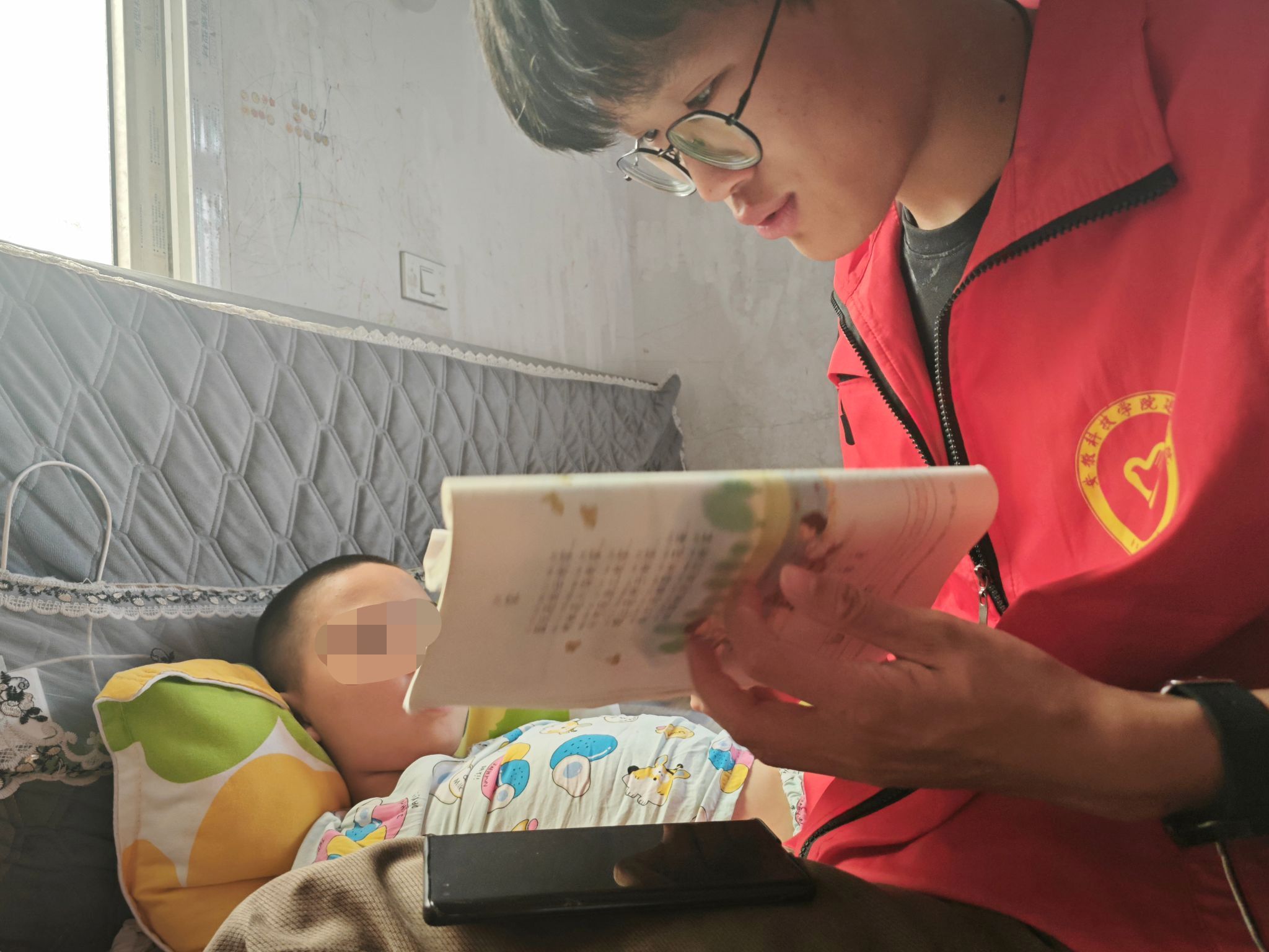 近日,安徽科技学院建筑学院“五色辉芒”省级基层服务践行团实施关爱特殊儿童教育计划,为东风村的脑瘫儿童提供认字、读拼音等基础语言训练,用团队的爱心与专业知识,启迪儿童的智慧,为儿童的未来播下希望的种子。