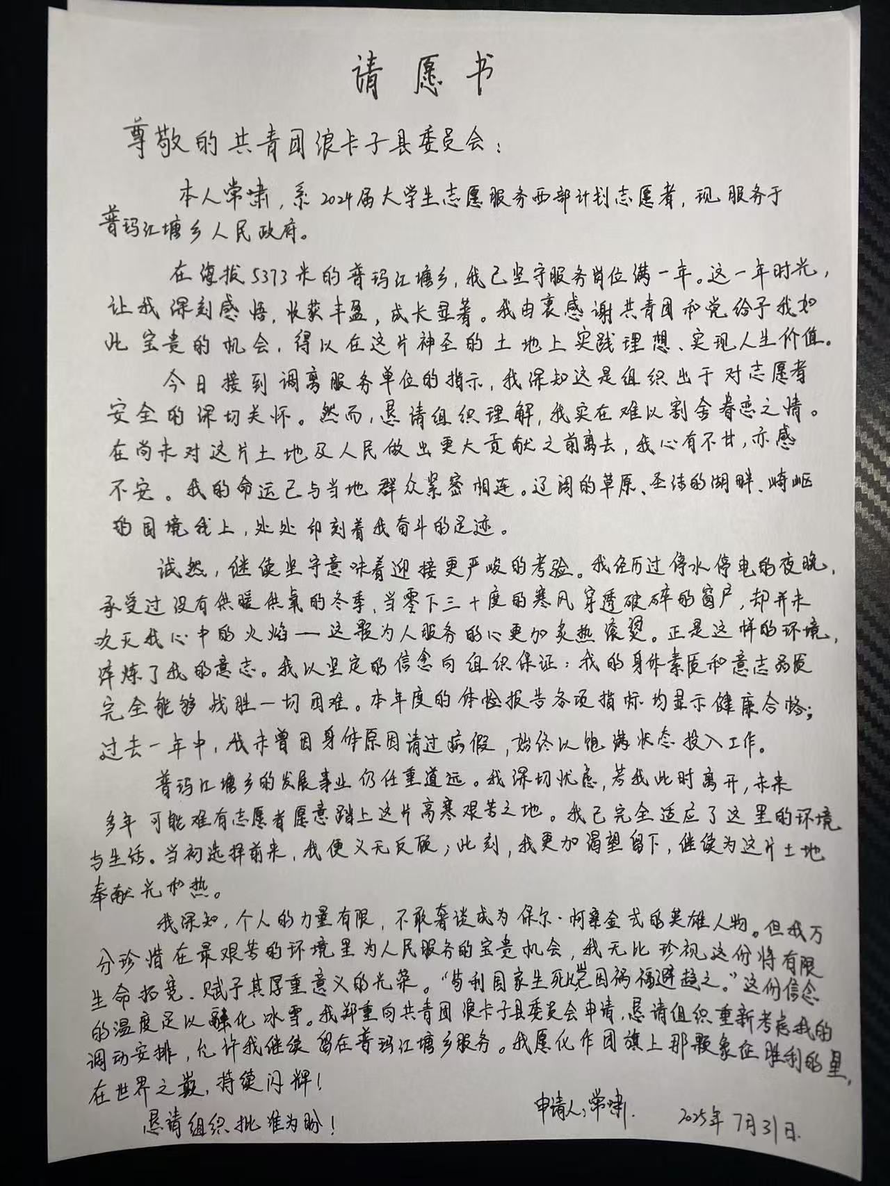2025年7月,出于对高海拔地区志愿者安全的高度负责,上级决定将乡镇志愿者调整至县级以上单位。得知消息的常啸,内心波澜起伏。