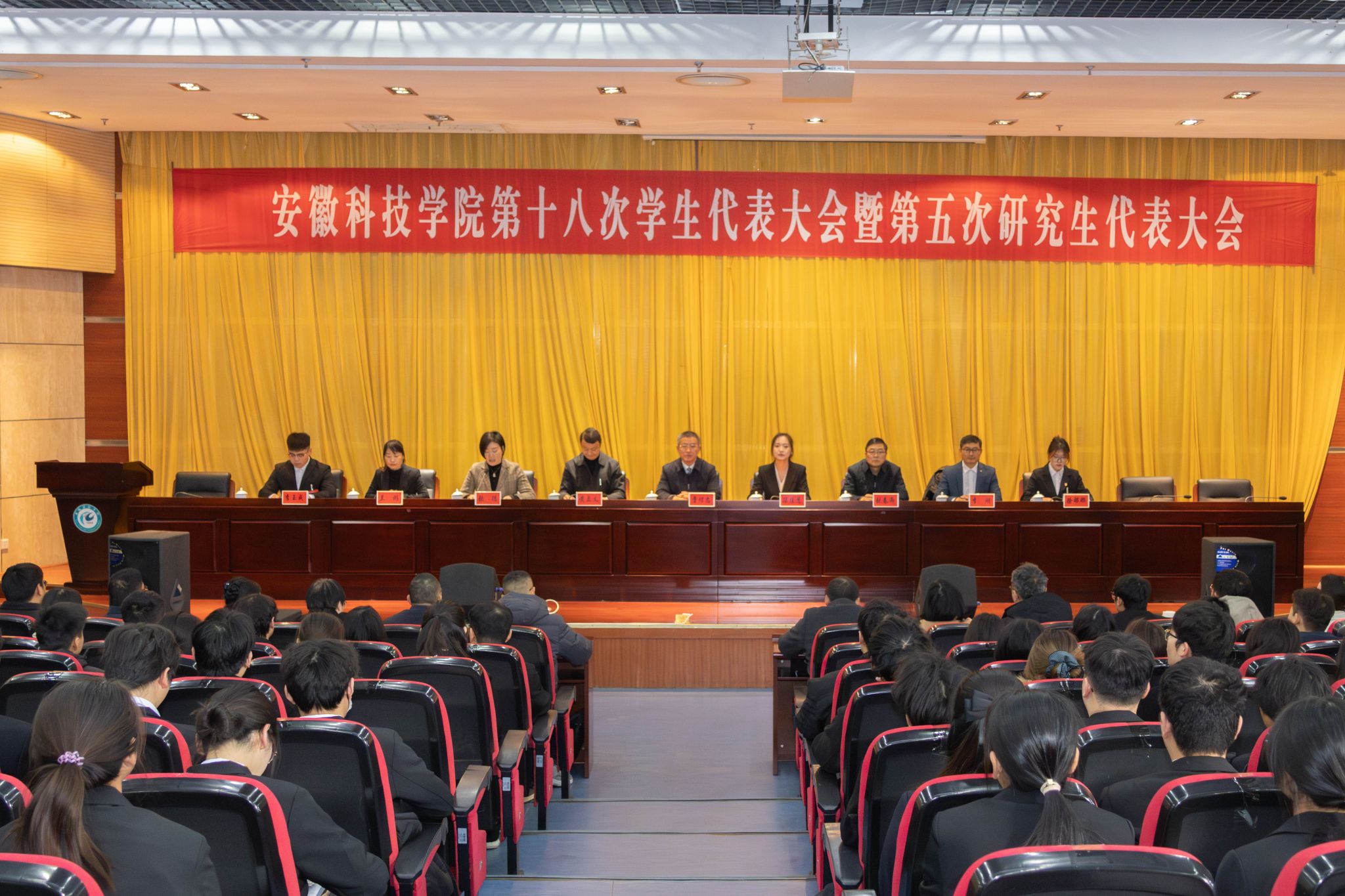 12月14日,安徽科技学院第十八次学生代表大会暨第五次研究生代表大会在凤阳校区会议中心第二报告厅召开。校党委副书记曹付忠、省学联驻会主席汤佳慧,党委宣传部、党委学工部、党委研工部主要负责人,各学院党委副书记、校院两级团组织负责人,209名本科生代表、80名研究生代表出席开幕会。开幕式由团委书记张聪主持。
