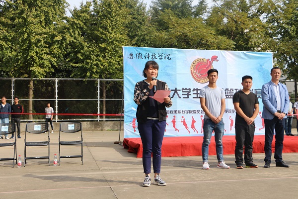 张聪致开幕辞,她指出大学生篮球联赛是我校的近年来打造的高规格体育赛事,彰显了体育文化作为校园文化的重要组成部分,在全面实施素质教育方面发挥的积极作用,促进青年大学生走下网络、走出宿舍、走向操场,增强体质,健全人格,锤炼意志。她希望各参赛队伍以赛会友,赛出风格,赛出水平,展现我校青年大学生良好的精神风貌和竞技状态,为青年篮球爱好者献上精彩的比赛。张聪要求裁判员和工作人员要做好赛事执裁和保障工作,确保赛事成功举办。