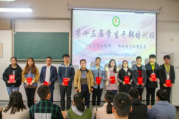 11月11日上午,校学生社团联合会在求知楼A204举行凤阳校区第十三期学生骨干培训班结业。学生处秘书石志成出席本次典礼,校社联全体成员及校级协会会长等参加典礼。