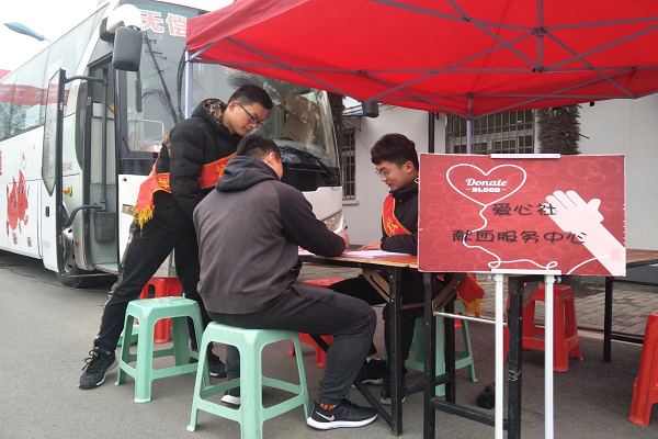 每到周末,随着爱心献血车的停驻,校园里又增添了一道温暖的风景线。校爱心社高度关注血液供应保障问题,与蚌埠市中心血站合作,面向全校师生组织开展“无偿献血”宣传、招募和服务工作。为了更好地接待献血者,为献血者提供指导,帮助献血者减轻心理压力并持续关注献血者献血后的身体状况等,爱心社在凤阳、龙湖校区安排学生志愿者轮流值班,有效地减轻了医护人员的负担,让献血者对无偿献血行为产生荣誉感与使命感。这一活动让学生进一步认识无偿献血的意义,帮助他们建立积极、正确的信念和态度,提高了学生的奉献意识和社会责任意识,大力弘扬了“奉献、友爱、互助、进步”的志愿服务精神。