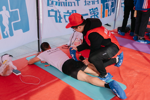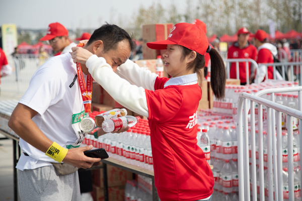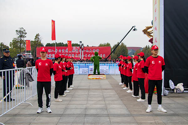 凌晨4时30分,气温6摄氏度,26辆大巴车满载着我校大学生志愿者驶出校门,奔赴各自工作地。志愿者们精神饱满、志气昂扬,身着统一的红色凤马志愿服务服,在6点前准时完成了各组志愿服务布点。不论是全程赛事、半程赛事还是欢乐跑赛事,不论是在起点、终点还是沿途各节点,那一抹动人心弦的志愿红为赛事增添了独特的风景,令人赏心悦目。在比赛中,我校志愿者承担了赛道维护、站点补给、路口维护、奖牌发放、计时、英语翻译等赛事服务工作,协助裁判和工作人员做好待跑区秩序维护工作。