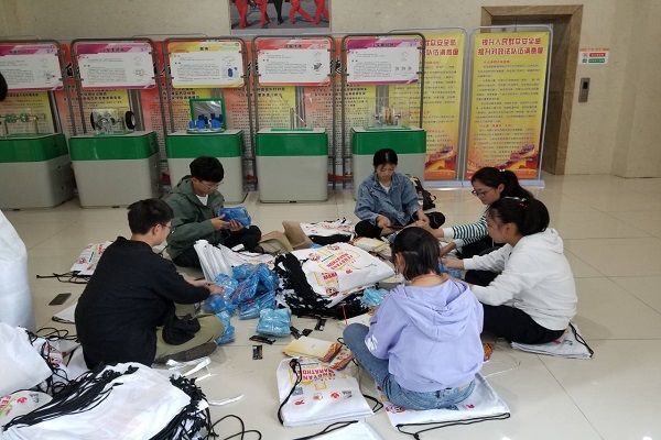 10月24日-26日,志愿者们提前进入备战状态,来自食品工程学院食品科学与工程191、192两个团支部的72名同学提前开始了2019凤阳国际马拉松参赛选手物资包分装工作。手册、服装、号码簿、餐包……一项项、一份份,共分装了参赛包一万五千余份、志愿服务包一千六百余份,并将参赛包和志愿服务包发到了每一位参赛队员和志愿者的手中。