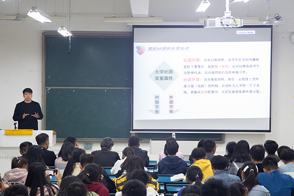 11月10晚上,校学生社团联合会邀请化学与材料工程学院团委书记张炎在凤阳校区新知楼B座303教室为广大社联骨干成员授课。校级、院级社联学生干部和各协会负责人等参加。