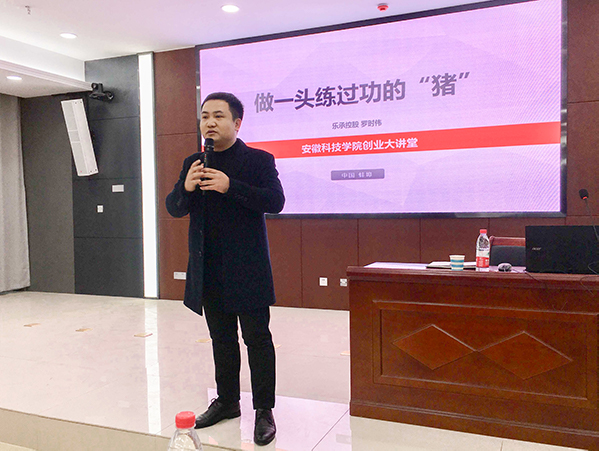 11月27日下午,由共青团安徽省委、安徽省学生联合会主办,安徽科技学院团委、安徽省大学生创新创业促进会、安徽科技学院KAB创业俱乐部承办的“中国梦,创业行,安徽青年在行动”创新创业大讲堂活动在我校龙湖校区西辅楼111教室举办。活动特邀我校2006届优秀校友、安徽乐承控股有限公司董事长、上海交通大学“新媒体与产业融合”特聘讲师罗时伟先生担任主讲人。活动由校团委副书记张聪主持,化学与材料工程学院团委书记、校KAB俱乐部指导老师张炎、KAB全体成员及各学院创新创业积极分子等100余人参加。