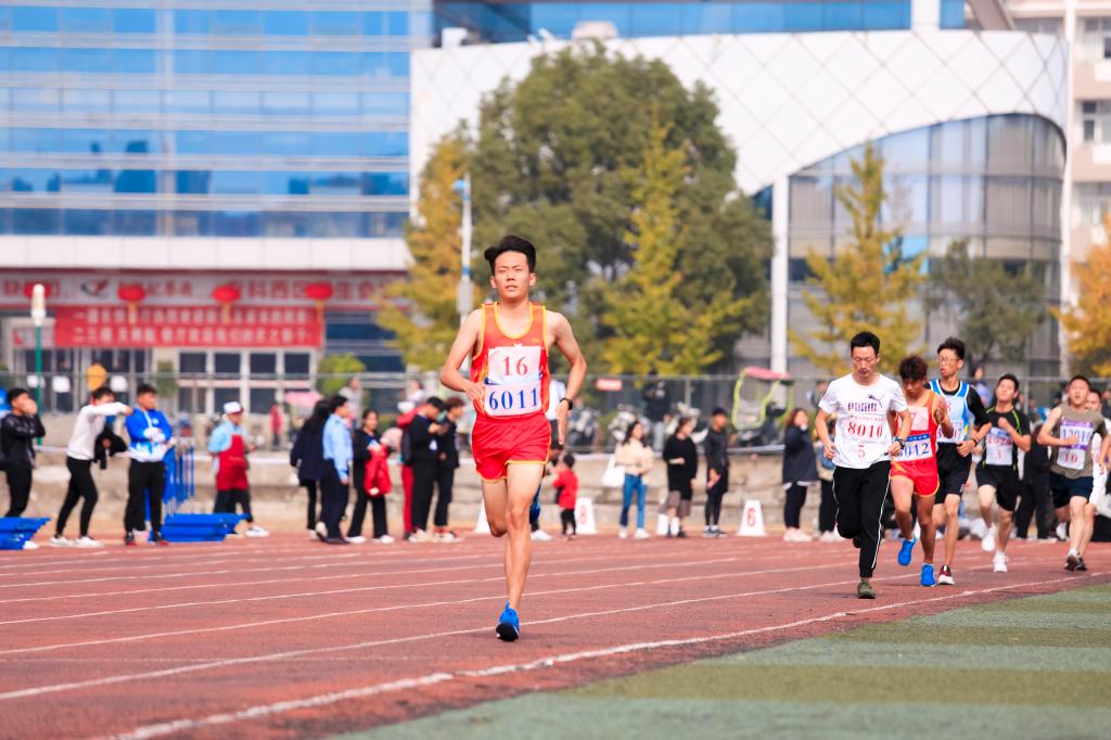 “加油,加油!”,观众不知疲倦的高声呐喊着,终于,男子5000米冠军,一个红色的身影冲过了终点线。他就是我们采访的主角,来自机械工程学院的杨超。