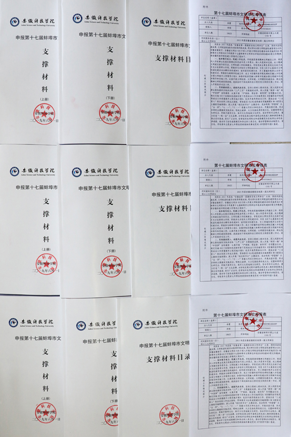 长期以来,学校党委高度重视精神文明建设工作,将其列入学校事业发展总体规划和党政年度工作要点,纳入年度考评范围,成立并适时调整学校精神文明建设指导委员会,党政主要负责同志及班子成员充分发挥带头作用,积极参与并组织文明创建活动,经常深入校园进行文明创建工作督察;印发《关于认真落实文明校园创建活动分解任务的通知》,逐项落实创建任务,全校各单位全力以赴抓落实。党委宣传部作为牵头单位,紧紧围绕《第十七届蚌埠市文明单位测评细则》8项一级指标、38项二级指标要求,与相关部门密切配合,在全面总结我校文明校园建设工作、认真梳理文明建设成果、提炼文明校园创建特色、严格开展自检自评的基础上,申报了“第十七届蚌埠市文明单位”。经过自查、申报、现场答辩、社区及所在区文明办推荐、市文明办现场复查审核、市文明委审定、公示等环节,日前,中共蚌埠市委、蚌埠市人民政府联合下文,表彰包括我校在内的“第十七届蚌埠市文明单位”。