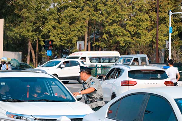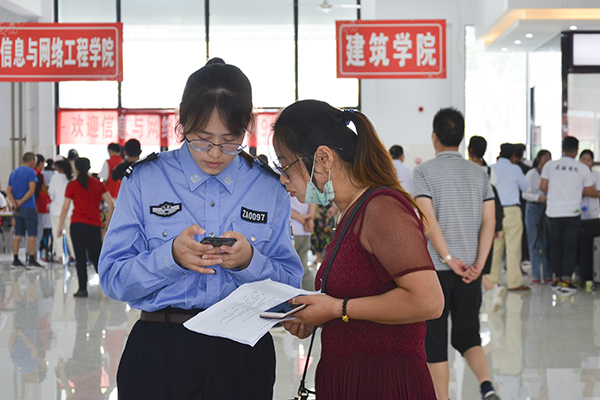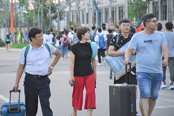 迎新车辆来来往往,迎来了一批又一批稚嫩面孔,与家长一起环顾着这个陌生而又充满期待的环境。校园外,工作人员指引;校园内,学长学姐帮忙搬行李,让这些第一次离开“小家”的新生感受到“大家”的温暖。