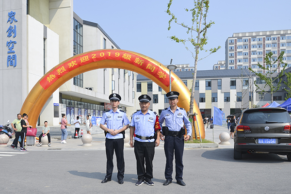 校园的道路上,保安叔叔维持着校园的秩序,在看到那一辆又一辆接送新生的大巴车,看到那些稚嫩而充满朝气的面孔时,眼底的欣慰一丝丝地荡漾着,盈盈笑意洋溢在那刚毅的脸庞上,为梦想的希望保驾护航。