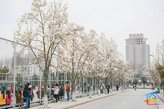 玉兰路上琼花玉枝,芳香馥郁,排球场上健儿的英姿正与此景相得益彰,花落声,欢笑声,声声入耳。这是我能想到的最美时光的样子。
