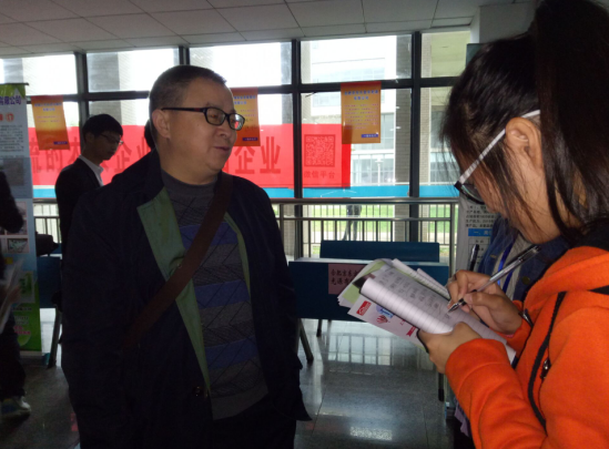 记者也采访了安徽省大富机电技术有限公司人力资源部人事专员薛热君,此次来招聘的是所属蚌埠的子公司。她告诉我们半月前该公司老总还曾来访过我校,我校现已有一批毕业生去往该公司就职了。她们招聘的专业主要涉及化学、机械类。对于人才的品质,他们也有一定的要求,希望应聘者能脚踏实地,从基层慢慢的做起。言语中不乏对我校学生的肯定。最后,她提到应聘者若是坚持本专业对口,就要学会热爱自己的工作。而选择跨专业则要调整好心态。