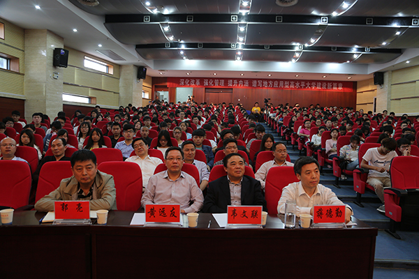 校党委副书记韦文联,党委委员、组织部长黄远友,党委委员、教务处长郭亮,党委委员、宣传(统战)部长卫胜及学校各党总支书记、副书记,全体辅导员,教师代表及学生代表共400余人聆听了报告会。