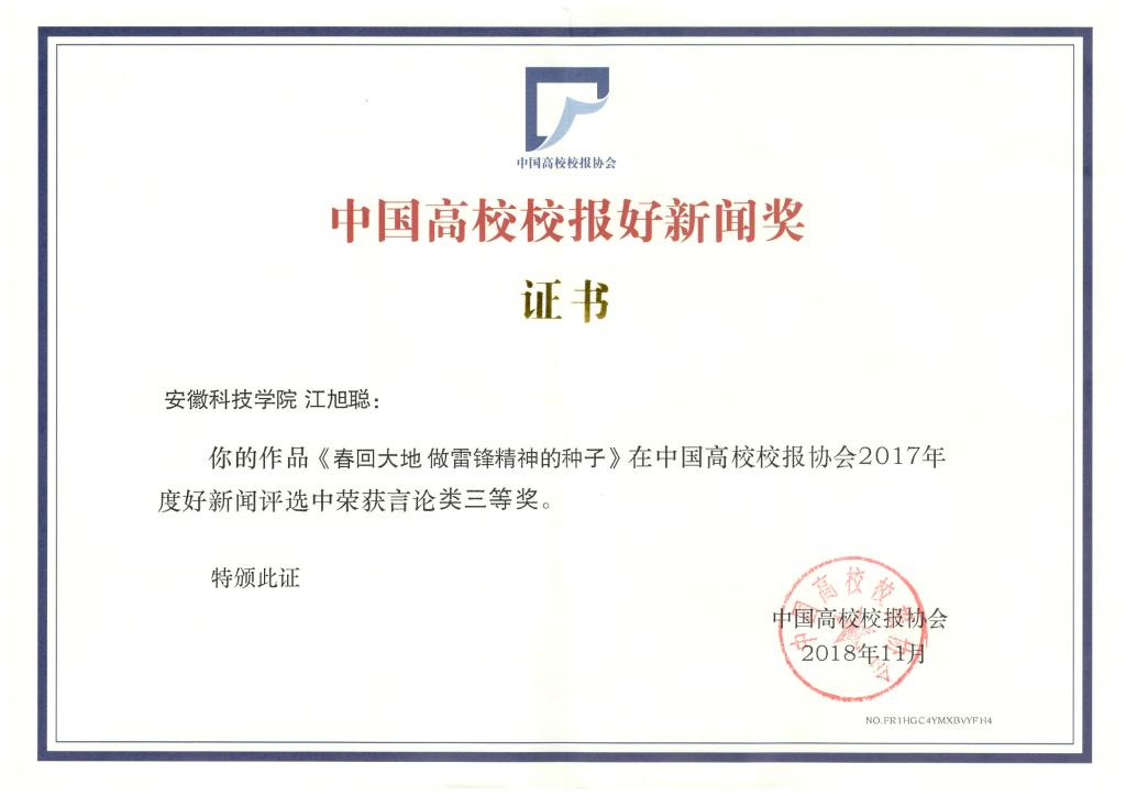 日前,2017年度全国高校校报好新闻奖评选结果揭晓,我校新媒体中心学生记者江旭聪同学的校报作品《春回大地 做雷锋精神的种子》荣获“中国高校校报好新闻奖”三等奖。这也是我校言论类作品首次获奖。