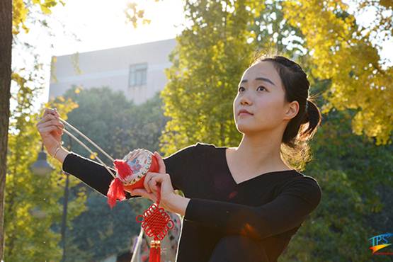 踮起脚尖,敲响花鼓,一颦一笑,动人心魄。时而抬腕低眉,时而轻舒云手,曼妙的舞姿在诉说着秋天的故事。