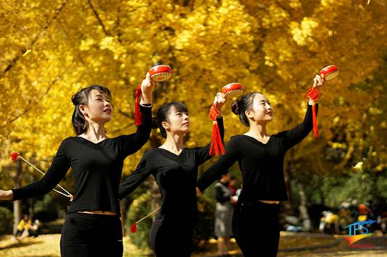 碧云天,黄叶地。银杏树下,一道道倩影起舞,顾盼生姿。皓腕轻抬,一声声花鼓悦耳,如歌如诉。