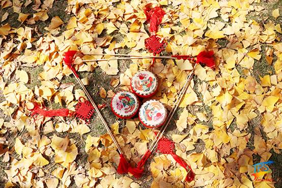 三寸花鼓面,一尺半竹根,从明朝到今朝。悠扬花鼓声中,片片银杏叶纷飞。虽然只有小巧双条鼓,却能敲响一片天。