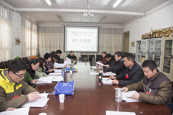1月12日下午,我校九届一次教代会暨十届一次工代会的代表分8个代表团就《校长工作报告》、《教代会、工会工作报告》、《财务工作报告》、《校九届工会经费审查委员会工作报告》、选举办法(草案)等进行认真讨论。校党委书记蒋德勤,党委副书记韦文联,党委委员、纪委书记丁和生,党委委员、副校长汪建飞,党委委员、副校长郭亮,党委委员、副校长黄远友参加讨论。