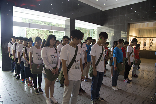 当走上井冈山烈士陵园的49级台阶时,每一位实践团成员的心都十分沉重。陵园里来往人员络绎不绝,但周围却出奇的安静,每个人都心怀敬畏之情,怕打扰了在这里沉睡的烈士们。听着基地老师一句句的讲解、看着一个个刻在石碑上的名字,团员们仿佛感受到了烈士们那视死如归的信仰和坚不可摧的信念,石碑上的每一个名字都那么屹然站着,宛如还带着体温。
