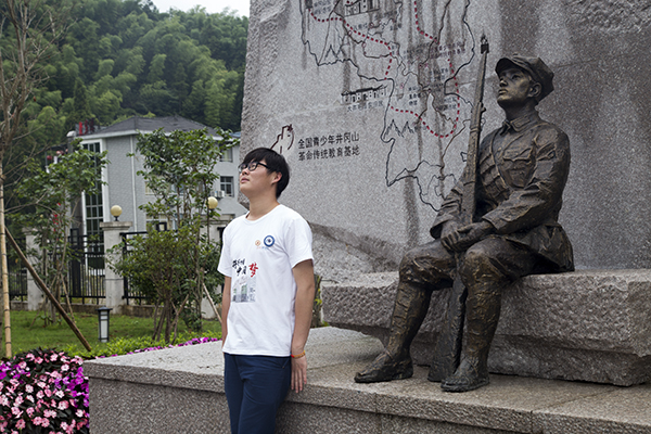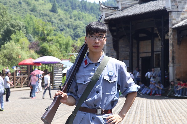 励志做标准的文艺理工生,一副文艺小男生的模样,却对中国革命历史如数家珍,实践团内的“历史老师”,随时随地为团员讲解历史事件,被基地班主任特封“班助”。
