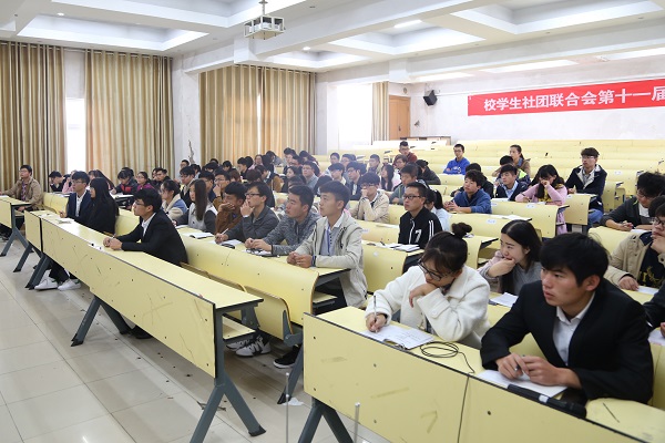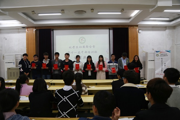 11月12至13日在学知楼217,校学生社团联合会第十一届干部培训班举行,来自社联、社团175名主要学生干部参训。培训班以“创新驱动社团文化品牌输出”为主题,深刻探讨了在新时期共青团改革大潮中,社联社团工作如何贯彻落实学校总体部署和团学工作要求,锐意改革,奋发进取。