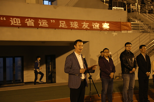 4月11日晚,由龙湖校区综合管理办公室、校团委、蚌埠团市委发起并组织的驻蚌高校大学生“迎省运”足球友谊赛在我校龙湖校区体育场隆重开幕。龙湖校区综合管理办公室主任施培智,校团委书记黄立义,蚌埠团市委学校部部长张晨,安徽财经大学团委副书记杜斌,蚌埠医学院团委副书记凌浩,蚌埠学院团委办公室主任刘卓群,安徽电子信息职业技术学院体育部教师石成银出席开幕式。开幕式由校团委副书记张聪主持。