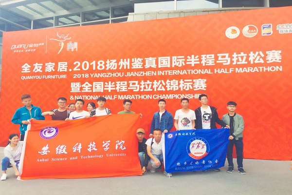 4月22日,由中央电视台体育频道、江苏省体育局、中国田径协会、扬州市人民政府主办,江苏省体育竞赛管理中心、江苏省体育产业指导中心、扬州市体育局承办的2018年“扬州鉴真国际半程马拉松赛”在扬州举行,我校大学生跑步协会15名青年学子在校团委秘书张成孜带队下赴扬州参赛。