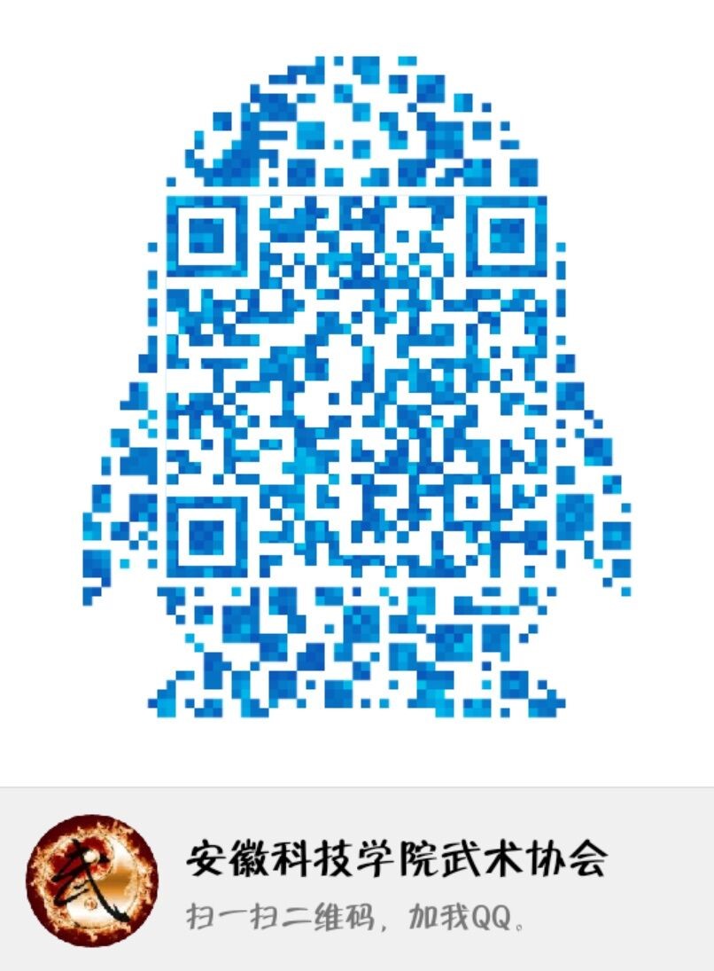协会官方QQ 2171975312 18届新生交流群QQ548015830,也可扫描下方二维码关注武术协会,获取更多相关信息。