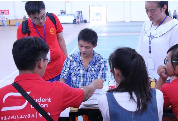 9月11日上午,西区体育馆报名处迎来了一位特殊的新生,只见他无时无刻不忘向身旁的母亲介绍自己新到学校的各种信息,和母亲一起分享他上大学的快乐心情。四年前,他说要带着母亲上大学;四年后,他兑现了这个承诺。一年又一年,他当母亲的眼睛,做母亲的拐杖,他在何方,母亲便在何方。他的感人事迹曾被中央电视台、新华网、人民网、中国文明网、安徽电视台、中安在线等多家主流媒体报道过。他就是独自照顾盲母13年的“中国好人”、“马鞍山市十佳道德模范”郑碧峰,也是我院计算机科学与技术专业2016级新生。