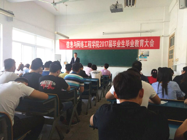 5月12日上午,信息与网络工程学院2017届毕业生教育暨文明离校动员大会在学知楼107教室举行。学院全体在校毕业生参加会议,会议由党总支书记王振其主持。