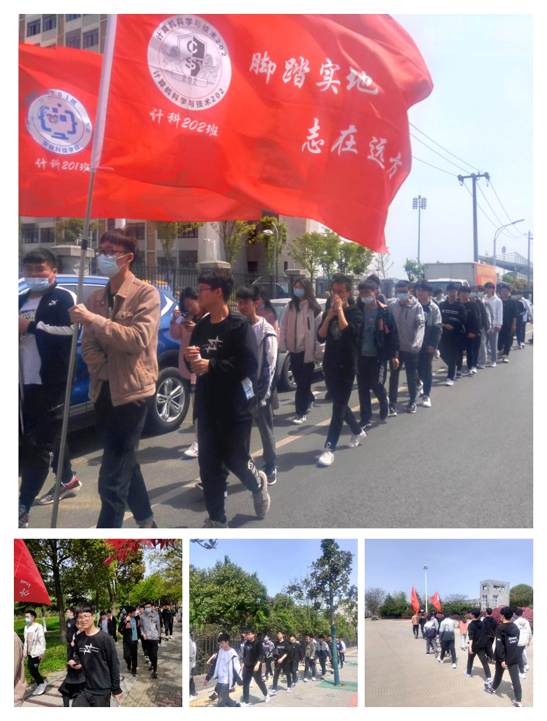 活动前,同学们列队整齐高举红色旗帜,通过徒步前往蚌埠市烈士陵园的方式,磨炼顽强进取的坚强意志,传承和弘扬党的光荣传统和革命精神,在途中,同学们齐声高唱《义勇军进行曲》,歌颂和赞美中华民族勤劳勇敢、自强不息、团结统一、爱好和平的民族精神,唤起红色记忆,激发爱国情怀。