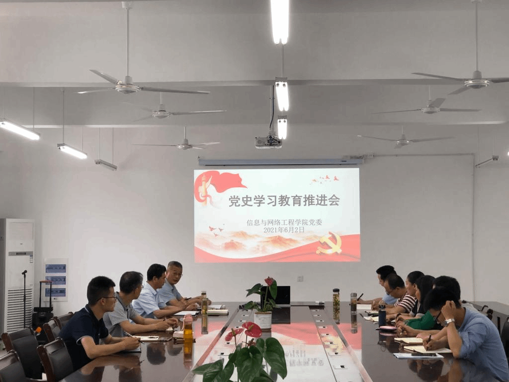 会议对《信息与网络工程学院党史学习教育实施方案》、《信息与网络工程学院“我为群众办实事”实践活动实施方案》等工作阶段性实施进展情况进行了梳理总结,对当前存在的问题进行分析思考,并结合学校党史学习教育最新部署要求,统筹安排布置了下一步重点任务。