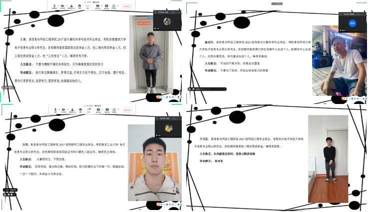 为引导学院学生树立正确考研目标,掌握相关考研技巧,了解更多考研信息,6月12日,信息与网络工程学院通过腾讯会议开展线上考研经验交流会。学院专职辅导员陈凯,六位2017级优秀考研学子刘成健、乔明磊、刘奇、朱骏华、唐成伟、王康出席本次交流会,2018级各班级拟考研同学参加了本次会议,会议由陈凯主持。