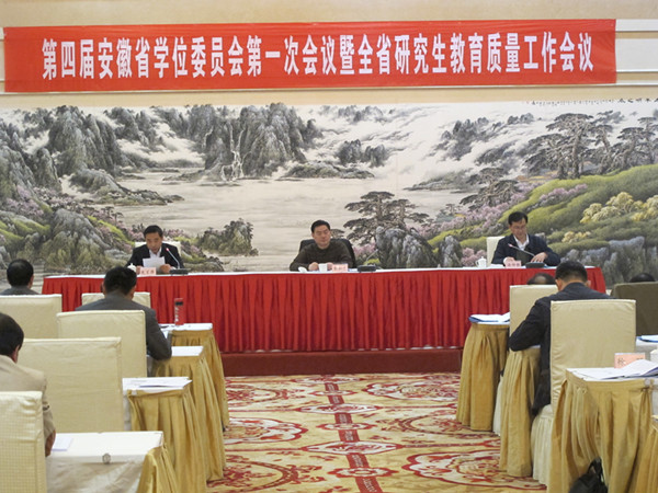 4月2日至3日,第四届安徽省学位委员会第一次会议暨全省研究生教育质量工作会议在合肥召开。副省长、省学位委员会主任委员谢广祥出席会议并讲话。省政府副秘书长、省学位委员会副主任委员吴行,省教育厅厅长、省学位委员会常务副主任委员程艺,省教育厅副厅长、省学位委员会副主任兼秘书长李和平,第四届省学位委员会全体委员,我省研究生培养单位及其职能部门主要负责人等参加了会议。我校校长陈士夫和研究生处处长李升和出席了会议。