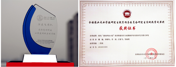 我校农业硕士资源利用与植物保护领域自2012年开始与中国农业大学合作在马鞍山当涂县共建了“盛农科技小院”,以“四零(零距离、零门槛、零费用、零时差)”模式将农业科研、研究生培养、农技推广、生产服务有机结合在一起,经过几年的实施取得了较好的业绩,汪建飞团队获得科技小院砥砺十年突出贡献奖,谢越主持获得年全国农业专业学位研究生教育指导委员会研究生实践教学成果二等奖。此外,李新伟从盛农科技小院的创建背景、人才培养、实施过程和成果业绩等方面在大会上作了汇报,取得代表们一致好评。(特约通讯员:马晓辉)