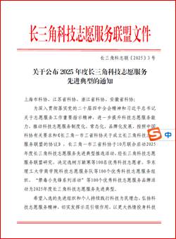 据悉,2025年度长三角科技志愿服务先进典型推选活动由长三角一市三省科协联合启动,经联盟研究审定,共选树 100 名优秀科技志愿者、100 个优秀科技志愿服务组织、100 个优秀科技志愿服务品牌活动,旨在推动科技志愿服务制度化、常态化、品牌化发展。(特约通讯员 马晓辉;审核 张春雨)