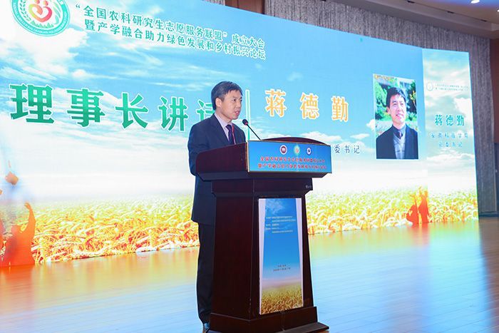 大会推选安徽科技学院党委书记蒋德勤教授担任全国农科研究生志愿服务联盟第一届理事会理事长。蒋德勤在讲话中强调,在国家脱贫攻坚和乡村振兴的伟大实践中,志愿者是一支重要力量,服务国家战略和行业产业发展需求,搭建行业高校志愿者联盟,发挥大学生的学科专业能力,组织推动志愿服务具有十分重要意义。指出本次全国农科研究生志愿服务联盟成立,是为深入贯彻落实习近平总书记关于研究生教育重要指示精神和贯彻落实乡村振兴国家战略,落实教育部、农业农村部等部委发布的有关文件精神,加快推进新时代研究生教育综合改革,由全国农业教指委倡导发起的一次成功探索与实践,对深化农科研究生教育教学改革,强化“大国三农”思政教育,培育“三农”情怀,进一步提升研究生培养质量,助力脱贫攻坚和服务乡村振兴战略,必将产生积极的推动和促进作用。本届理事会将在全国农业教指委的悉心指导下,在联盟宗旨的指引下,积极作为、有效工作,充分发挥桥梁和纽带作用,创造性地组织和开展联盟活动,为提高农科研究生培养质量和服务经济社会发展做出新的更大贡献。