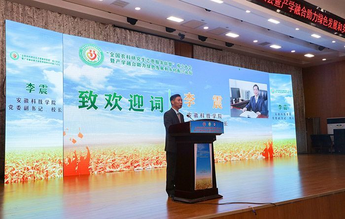 安徽科技学院党委副书记、校长李震教授在论坛开幕式上致辞,向参会的各位领导、各位专家、各位来宾表示热烈欢迎,向长期以来给予安徽科技学院事业发展关心支持的各位领导、各界朋友表示衷心感谢。介绍了安徽科技学院办学基本情况,特别是学校近十年来积极推动国家批准的特殊需求农业专业学位研究生教育项目进展,以及新增硕士学位授权审核申请工作的有关情况。他强调,党的十九大提出了实施乡村振兴战略,今年是脱贫攻坚、全面建成小康社会决胜之年,大家齐聚本次论坛,畅谈发展再出发,共谋振兴再助力,会议主旨鲜明,具有鲜明的时代特点和重要的现实意义。相信在各位领导、各位同仁的共同努力下,本次论坛一定能够取得圆满成功,取得丰硕成果,进而为加快推进新时代研究生教育、服务乡村振兴国家战略做出积极贡献。