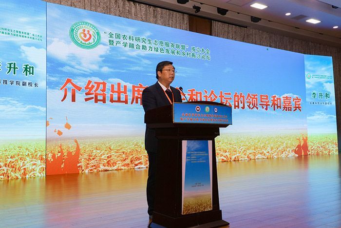 为全面学习贯彻落实党的十九届五中全会精神,增强贫困地区脱贫攻坚成果及内生发展动力,特别是解决贫困地区人才培养的问题,在安徽科技学院建校70周年之际,11月6日,来自79所高校的240余名涉农高校专家与代表齐聚安徽科技学院,共同见证全国农科研究生志愿服务联盟成立,谋划涉农高校产教融合助力绿色发展和乡村振兴。全国农业专业学位研究生教育指导委员会(以下称“全国农业教指委”)秘书处、安徽科技学院和小岗村委会共同牵头,中国农业大学、南京农业大学、西北农林科技大学等21所涉农高校(含全国52个挂牌督战贫困县所在省区的8所涉农高校)共同倡议,面向全国农科研究生教育培养单位共同发起的“全国农科研究生志愿服务联盟”成立大会暨产学融合助力绿色发展和乡村振兴论坛在中国农村改革发源地凤阳县小岗村举办。大会开幕式由安徽科技学院党委委员、副校长李升和教授主持。