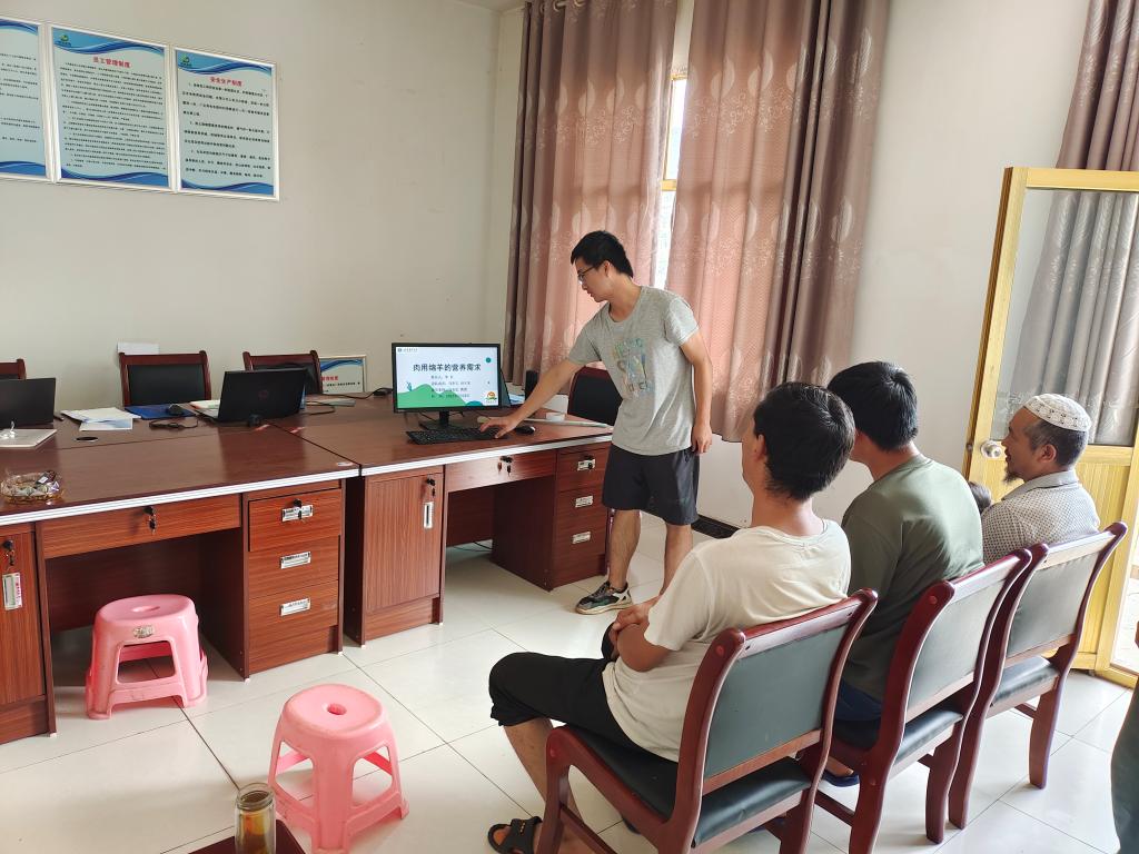 团队还应当地畜牧部门邀请,实地走访了20余家当地养殖大户,了解了当地养殖户饲养的什么品种?饲喂的什么饲料?常发疾病是什么?养羊是否赚钱?还缺少什么技术?等等。通过走访,发现当地养殖户科技养殖观念淡薄,基础设施简陋,饲养品种繁杂,羔羊成活率偏低,防疫意识薄弱,养羊收益不稳定等,同时还就发现的羊拉稀、羊食毛(吃土)、羊痘、羊中暑等进行科学指导,受到养殖户普遍称赞。