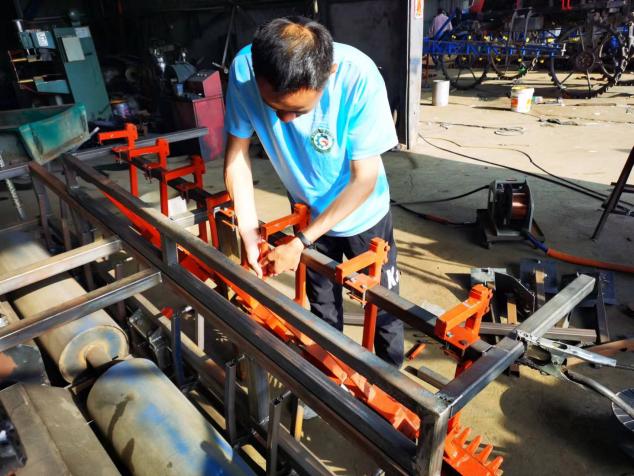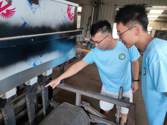 “锄禾兴农”实践团利用今年暑期时间,驻扎农村,深入田间地头。为了尽快完成新一代除草机器的研发,实践团队在慧龙机械厂的厂区内搭建了简易的移动铁皮房用来工作和生活。在日常绘图遇到尺寸模糊等困难的时候,实践团成员们便拿着卡尺,冒着高温酷暑到院子里进行现场测量记录。